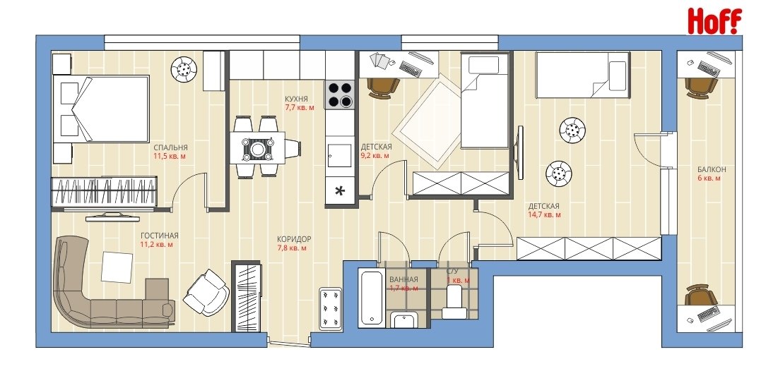Маленькая трешка в блочном доме: 3 варианта обстановки3,9