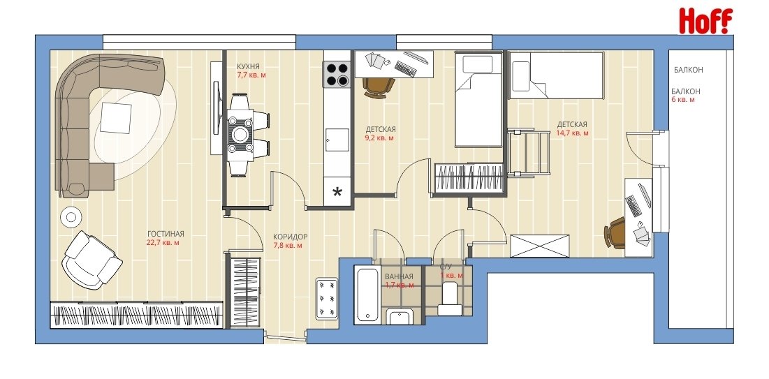 Маленькая трешка в блочном доме: 3 варианта обстановки3,5