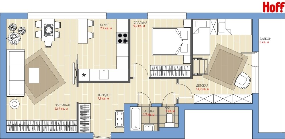 Маленькая трешка в блочном доме: 3 варианта обстановки4,4