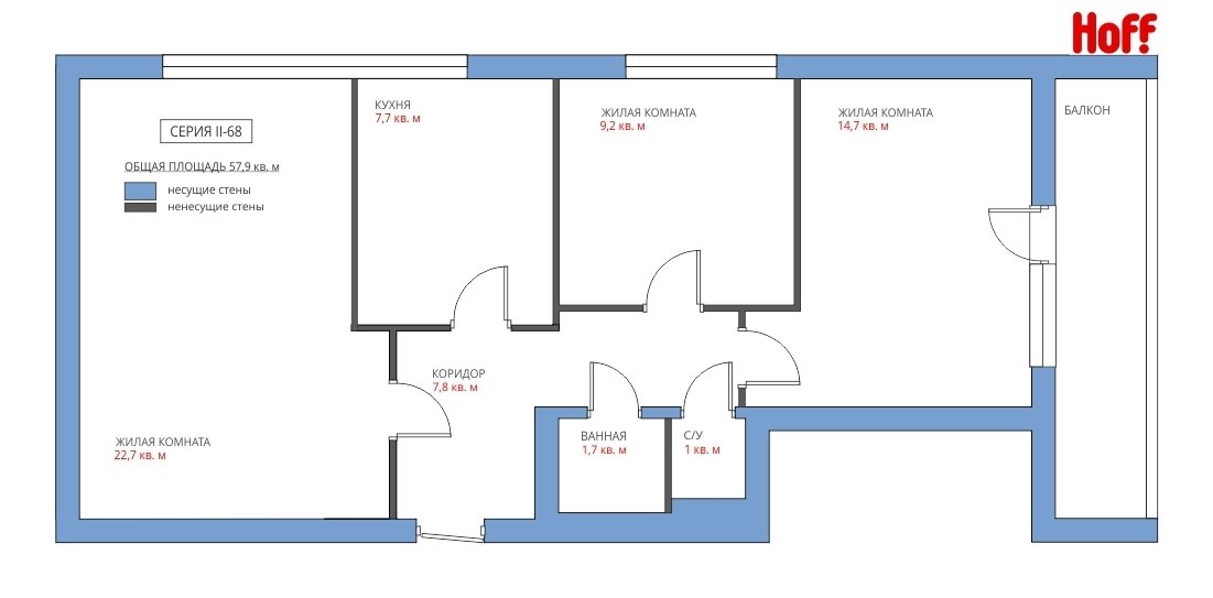 Маленькая трешка в блочном доме: 3 варианта обстановки4,3