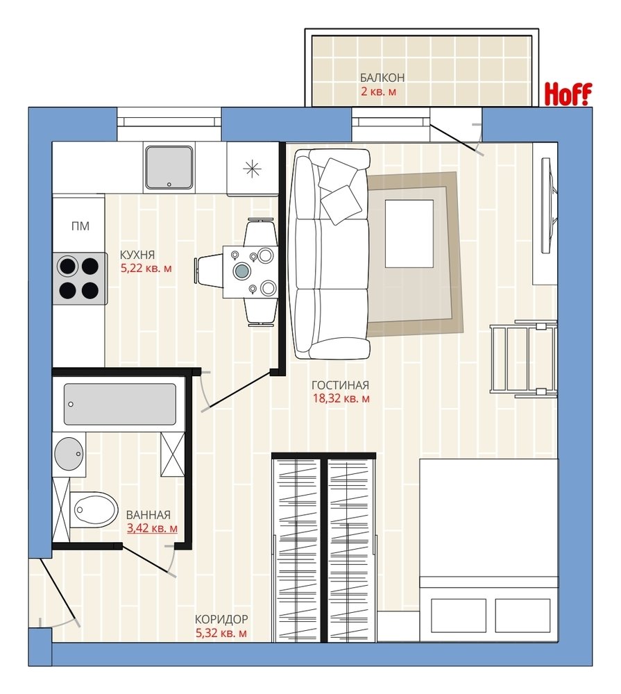 Фотография:  в стиле , Квартира, Планировки, HOFF, Перепланировка, HOFF, Анастасия Киселева, Кирпичный дом, 1 комната, до 40 метров, 1-511 – фото на INMYROOM