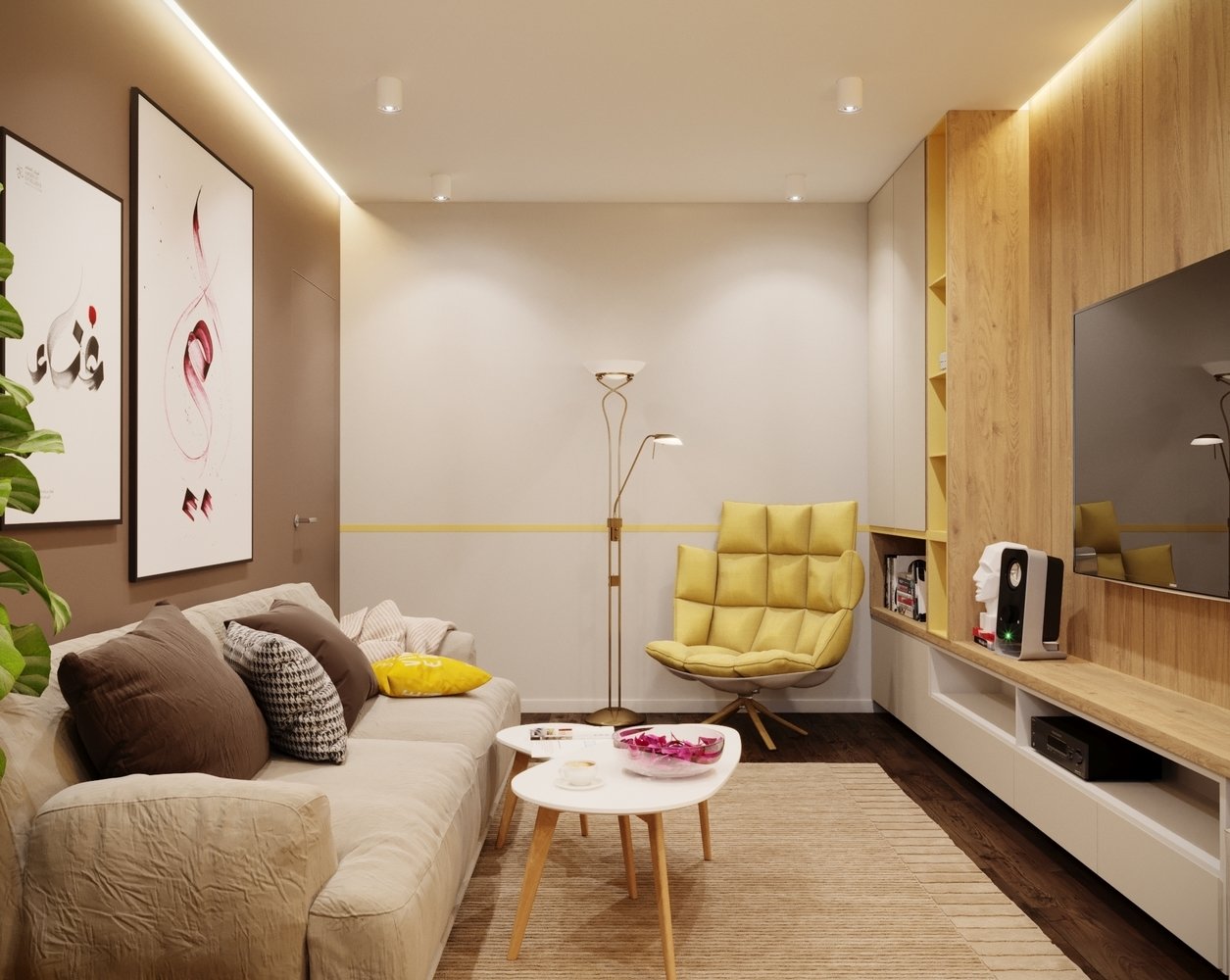 Фотография: Гостиная в стиле Эко, Современный, Квартира, Проект недели, Москва, Панельный дом, 3 комнаты, 60-90 метров, Владислав Седов, LINES – фото на INMYROOM