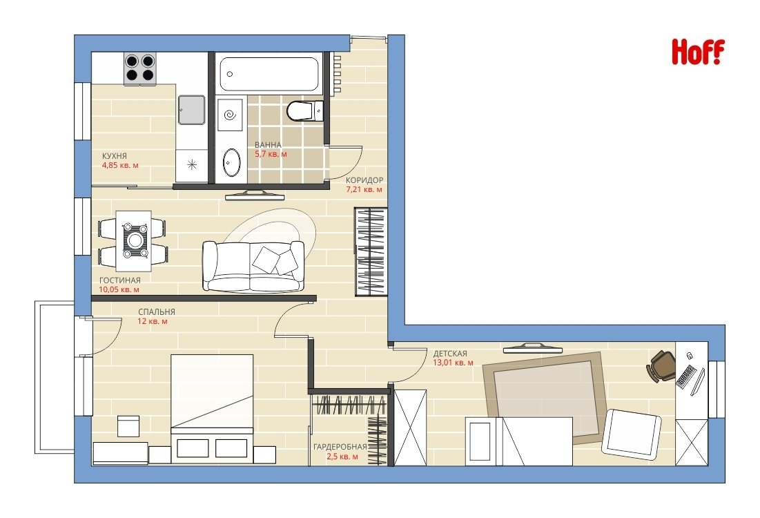 Как расставить мебель в маленькой трешке: 3 варианта4,4