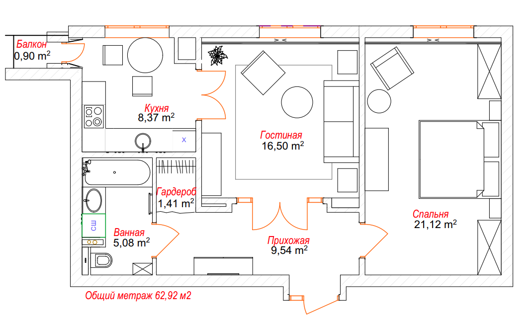 Дизайн двушки с маленькой кухней на Смоленском бульваре4,5