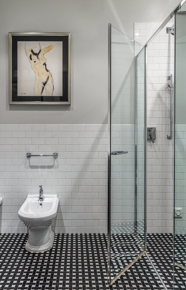 Санузел остался на своем месте, но ванну заменили на душевую в строительном исполнении.