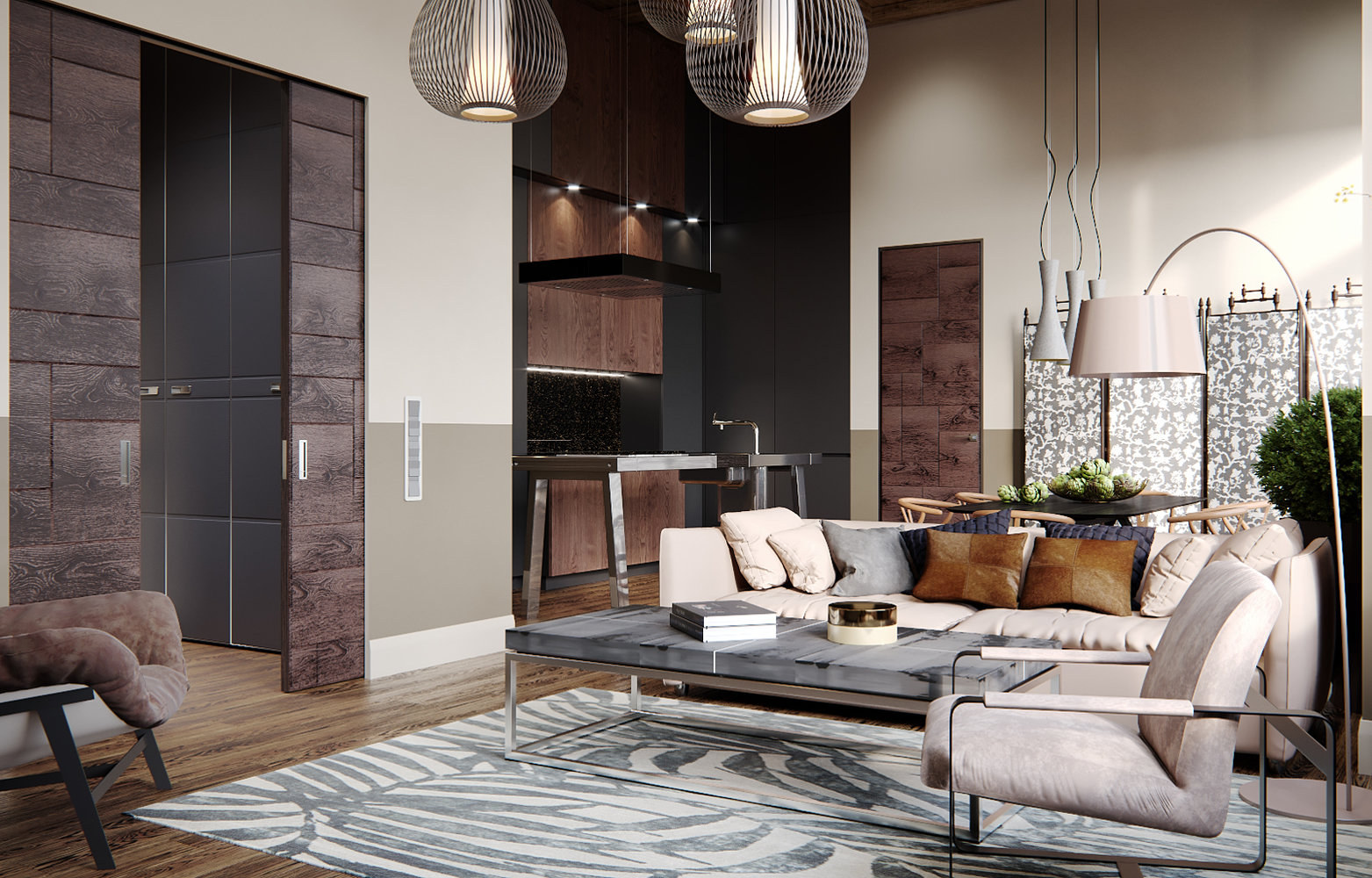 Фотография: Гостиная в стиле Современный, Квартира, Проект недели, Москва, Диана Мальцева, Монолитный дом, 2 комнаты, 60-90 метров, ЖК «Лица» – фото на INMYROOM