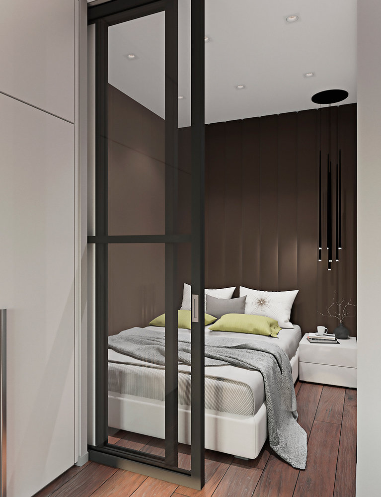 Фотография: Спальня в стиле Минимализм, Современный, Квартира, Студия, Проект недели, Новая Москва, 40-60 метров, Монолитно-кирпичный, Галина Ло, ЖК Рассказово – фото на INMYROOM