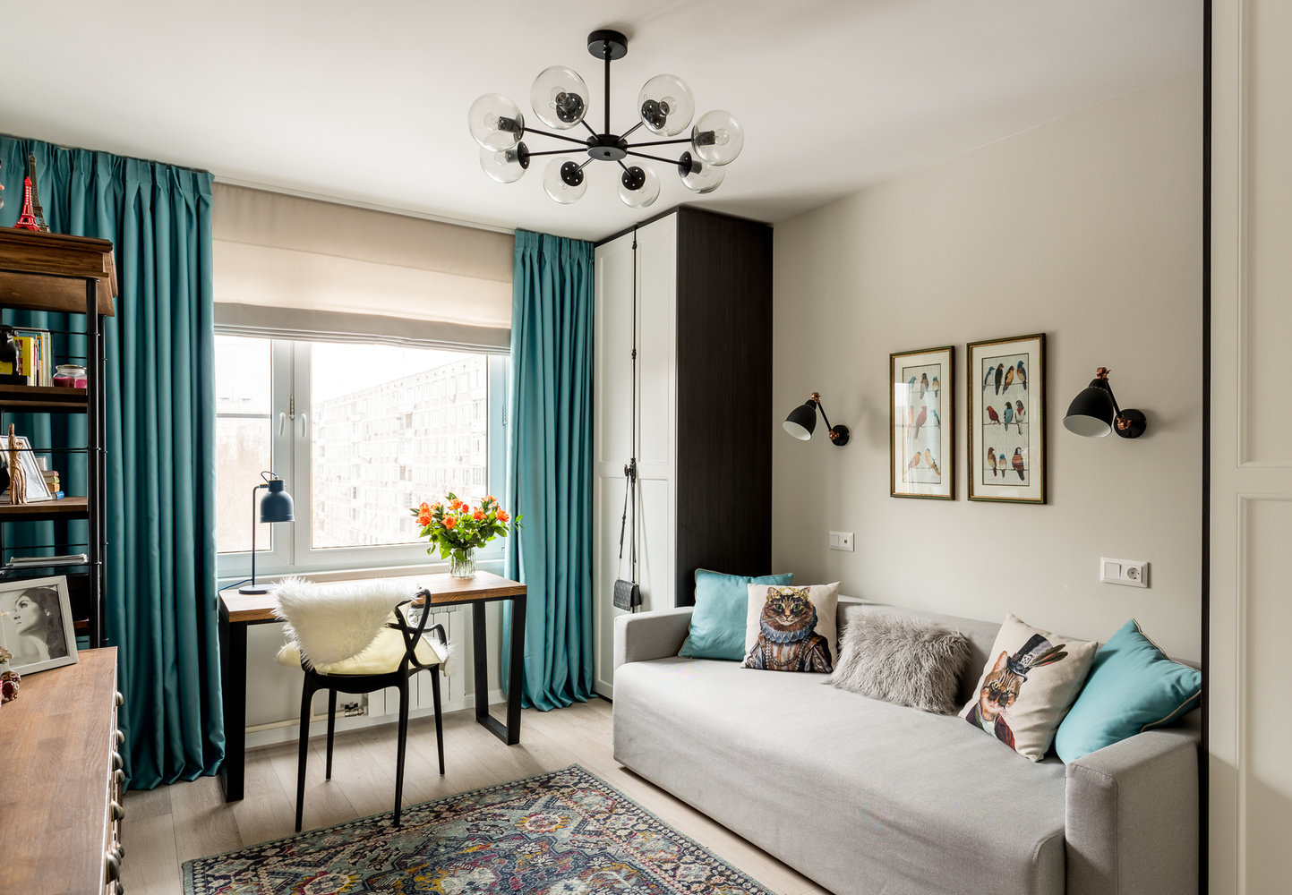 Фотография: Гостиная в стиле Скандинавский, Квартира, Проект недели, Москва, Панельный дом, 2 комнаты, 40-60 метров, 1605, Наталья Широкорад – фото на INMYROOM