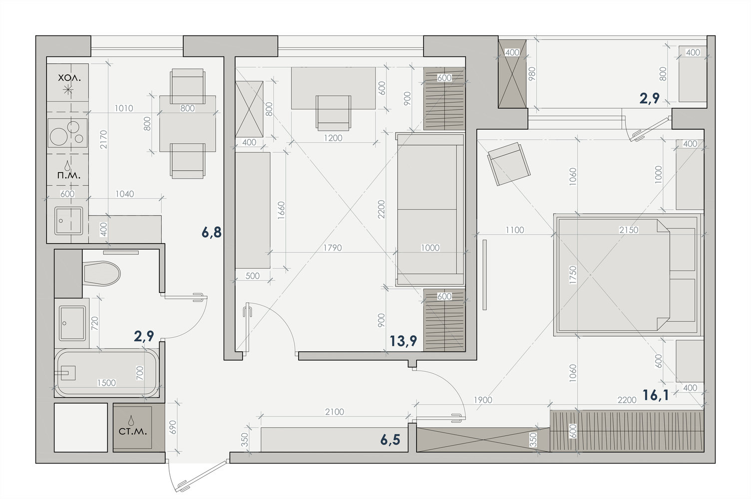Фотография: Планировки в стиле , Квартира, Проект недели, Москва, Панельный дом, 2 комнаты, 40-60 метров, 1605, Наталья Широкорад – фото на INMYROOM