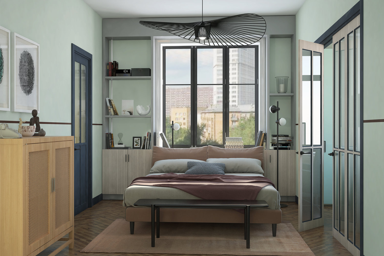 Фотография: Спальня в стиле Минимализм, Современный, Эклектика, Квартира, Проект недели, Москва, Кирпичный дом, 2 комнаты, 60-90 метров, Манана Хучуа – фото на INMYROOM