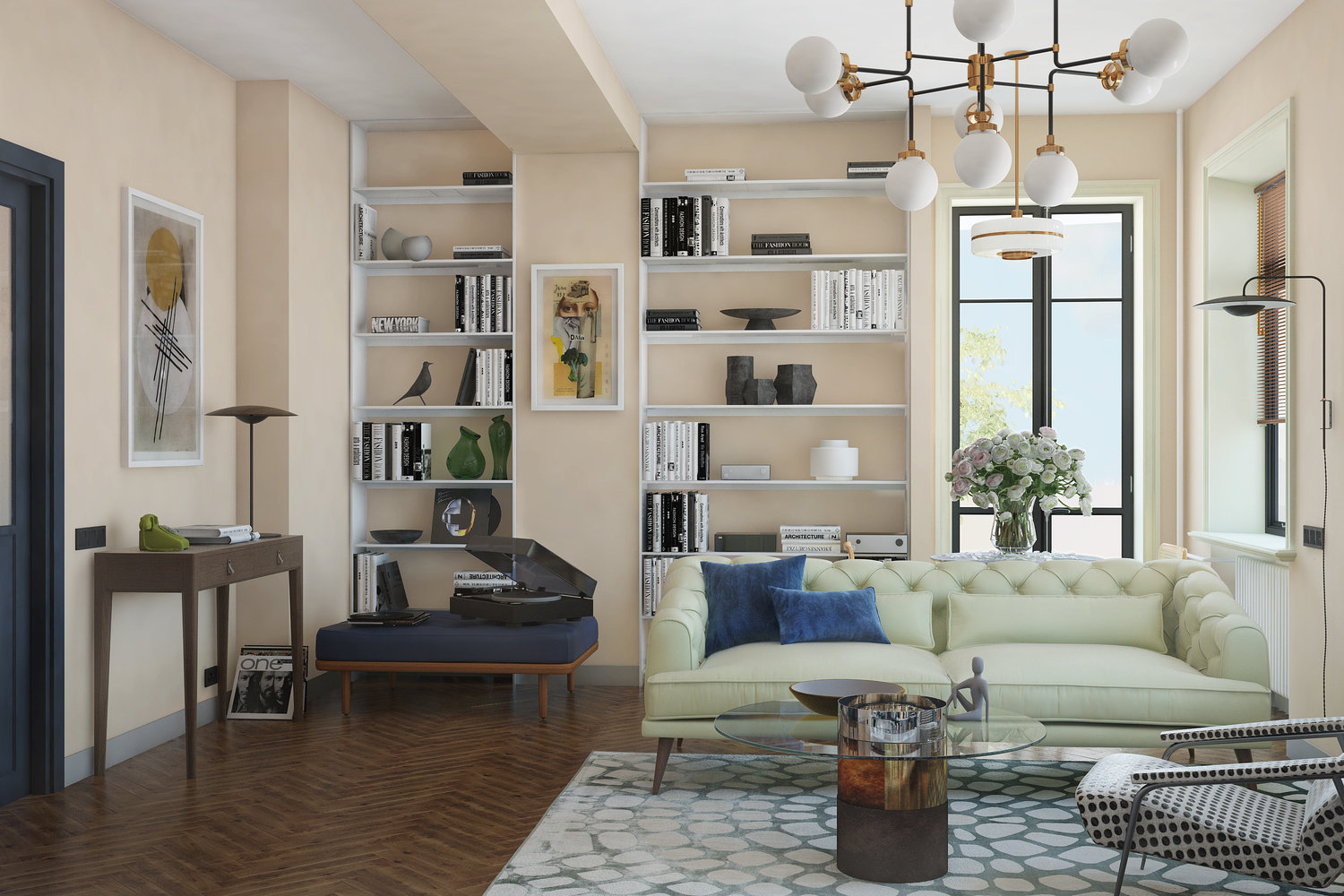 Фотография: Гостиная в стиле Современный, Эклектика, Квартира, Проект недели, Москва, Кирпичный дом, 2 комнаты, 60-90 метров, Манана Хучуа – фото на INMYROOM