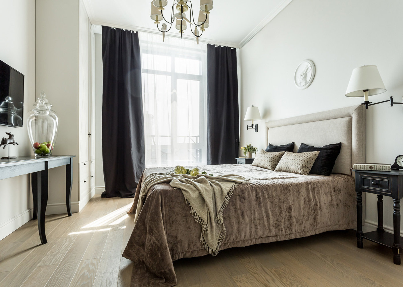 Фотография: Спальня в стиле Классический, Современный, Квартира, Проект недели, Москва, Монолитный дом, 2 комнаты, 60-90 метров, Елена Лазутина – фото на INMYROOM