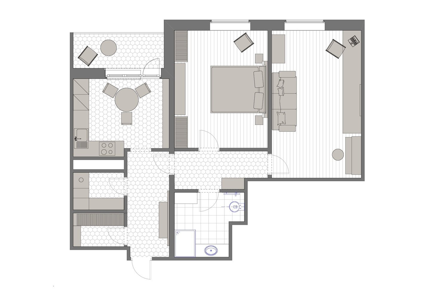 Фотография: Планировки в стиле , Современный, Квартира, Проект недели, Москва, Монолитный дом, 2 комнаты, 60-90 метров, Елена Лазутина – фото на INMYROOM
