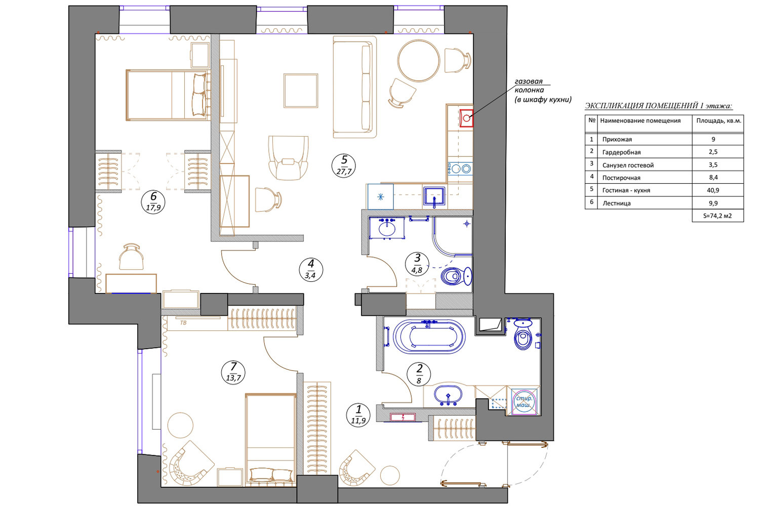 Фотография: Планировки в стиле , Классический, Современный, Квартира, Проект недели, Москва, Сергей Ананьев, 3 комнаты, 60-90 метров, KuzovlevaHome – фото на INMYROOM
