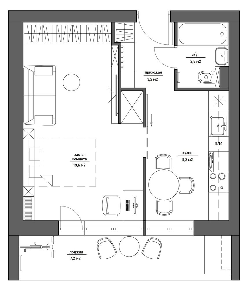 Фотография: Планировки в стиле , Квартира, Перепланировка, Блочный дом, II-68, 1 комната, до 40 метров, Екатерина Саламандра, Бюро «Общая Площадь», Руслан Просвирин, PROSVIRIN DESIGN STUDIO – фото на INMYROOM