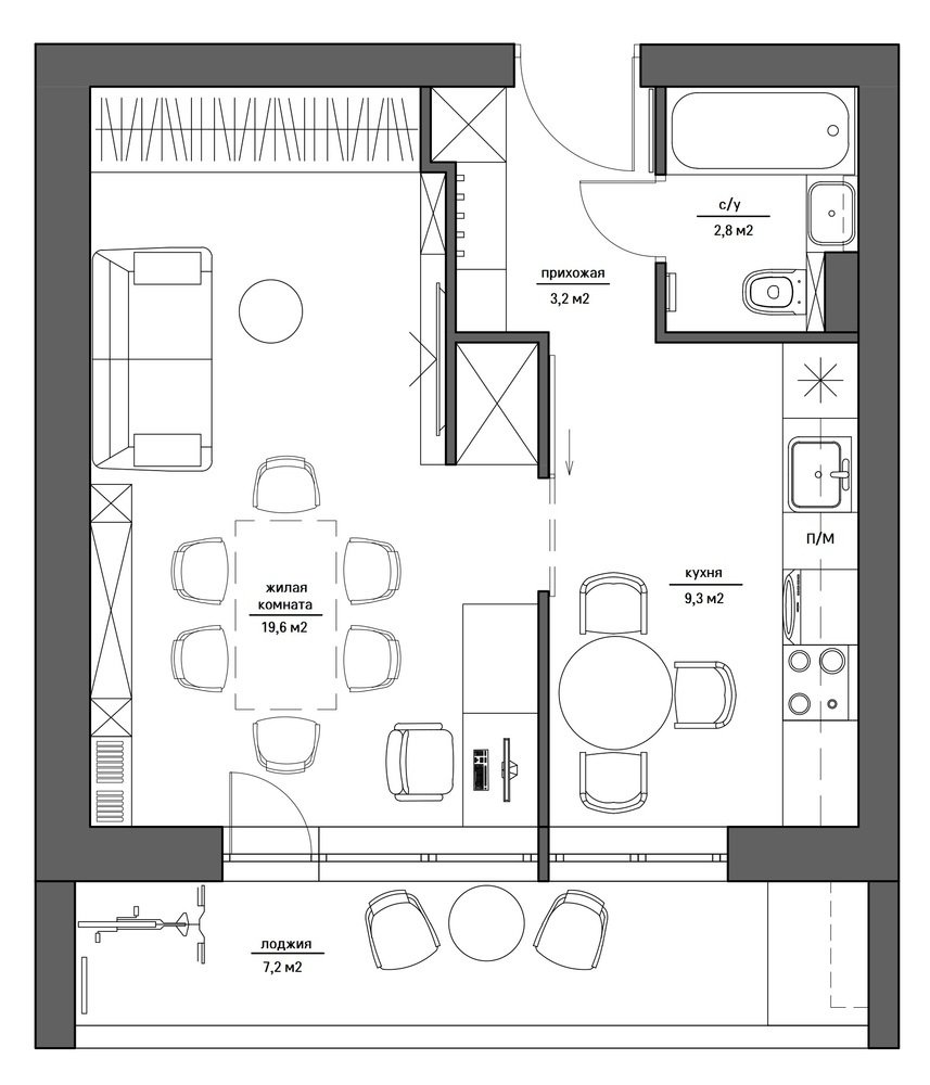 Фотография: Планировки в стиле , Квартира, Перепланировка, Блочный дом, II-68, 1 комната, до 40 метров, Екатерина Саламандра, Бюро «Общая Площадь», Руслан Просвирин, PROSVIRIN DESIGN STUDIO – фото на INMYROOM