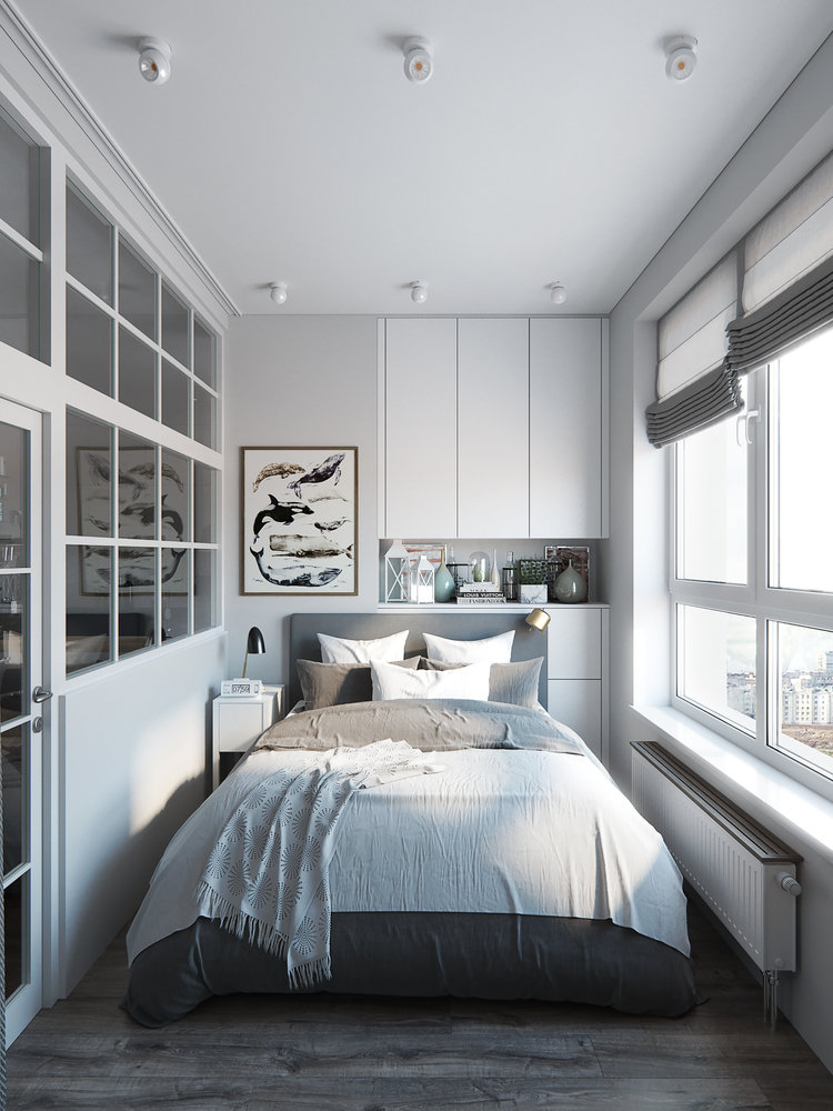 Фотография: Спальня в стиле Современный, Скандинавский, Квартира, Проект недели, Москва, Монолитный дом, 2 комнаты, 40-60 метров, Ольга Артемова, ЖК «Нагатинский затон» – фото на INMYROOM