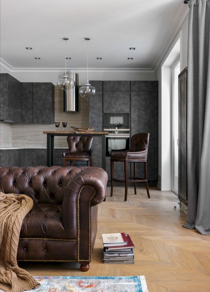 Фотография: Кухня и столовая в стиле Современный, Классический, Лофт, Квартира, Проект недели, Москва, Монолитный дом, 2 комнаты, 60-90 метров, Серж Махов, ЖК «Белый парк» – фото на INMYROOM