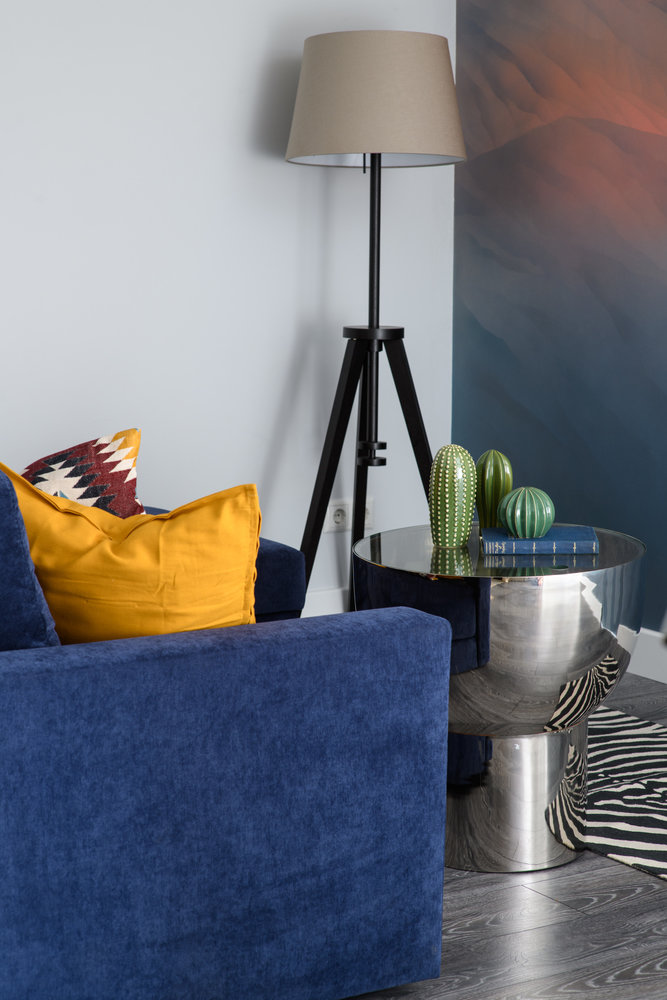Фотография: Гостиная в стиле Современный, Квартира, Проект недели, Москва, Монолитный дом, 1 комната, 40-60 метров, Анна Моджаро, ЖК «Оранж парк» – фото на INMYROOM