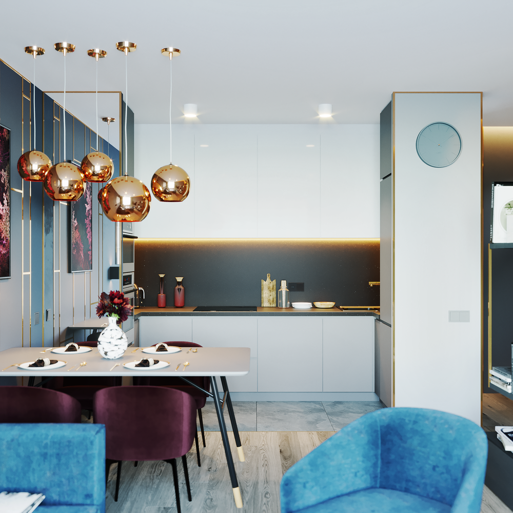 Фотография: Кухня и столовая в стиле Современный, Квартира, Проект недели, Санкт-Петербург, Монолитный дом, 2 комнаты, 40-60 метров, Lines Design Bureau, ЖК «LEGENDA Комендантского» – фото на INMYROOM
