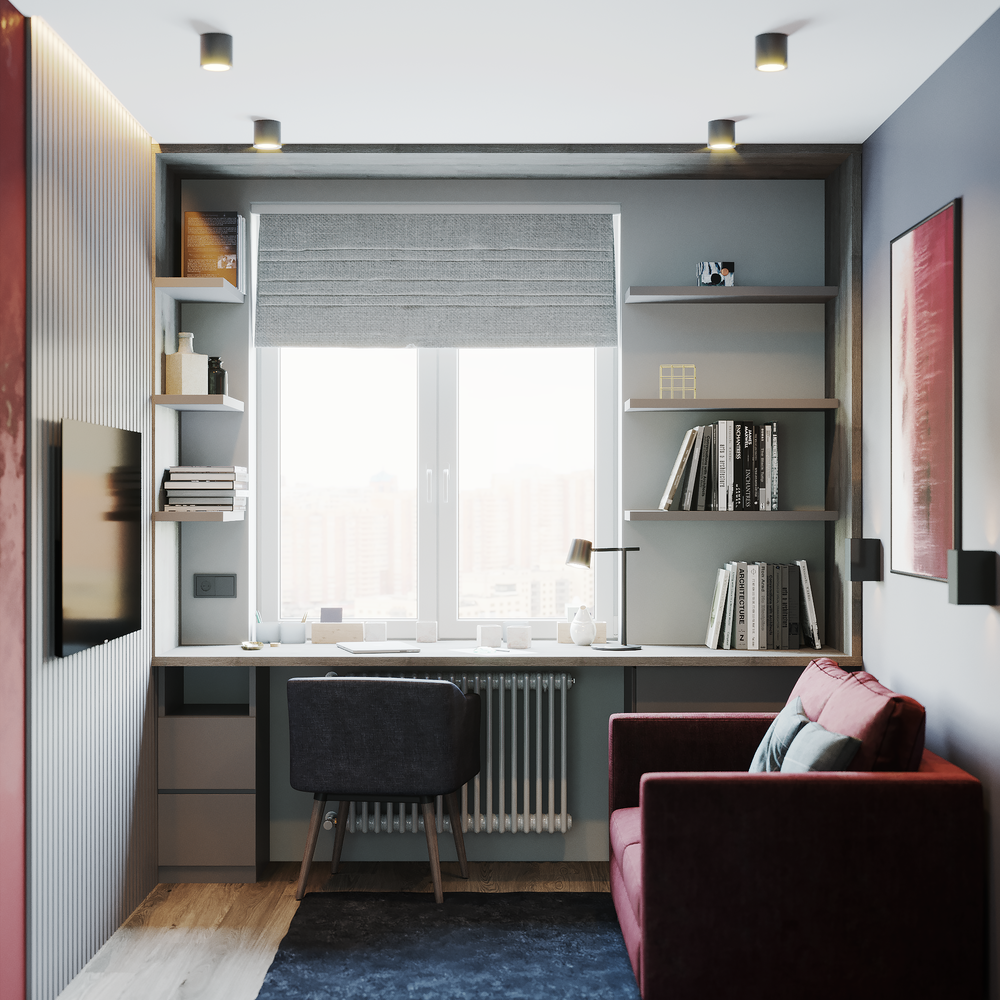 Фотография: Кабинет в стиле Современный, Квартира, Проект недели, Санкт-Петербург, Монолитный дом, 2 комнаты, 40-60 метров, Lines Design Bureau, ЖК «LEGENDA Комендантского» – фото на INMYROOM