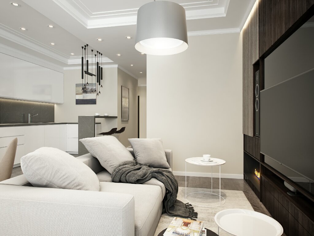 Фотография: Гостиная в стиле Современный, Квартира, Проект недели, Москва, Евгения Матвеенко, FlatsDesign, Монолитный дом, 4 и больше, Более 90 метров – фото на INMYROOM