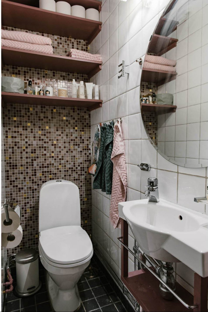 Фотография: Ванная в стиле Минимализм, Декор интерьера, Малогабаритная квартира, Квартира, Швеция, Синий, Серый, Розовый, 2 комнаты, до 40 метров – фото на INMYROOM