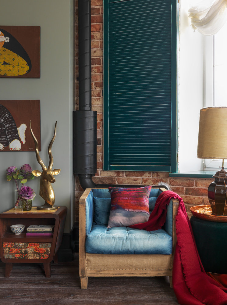 Фотография: Гостиная в стиле Эклектика, Лофт, Квартира, Проект недели, Москва, Монолитный дом, Дарья Василькова, 2 комнаты, 60-90 метров, ЖК Гринфилд – фото на INMYROOM