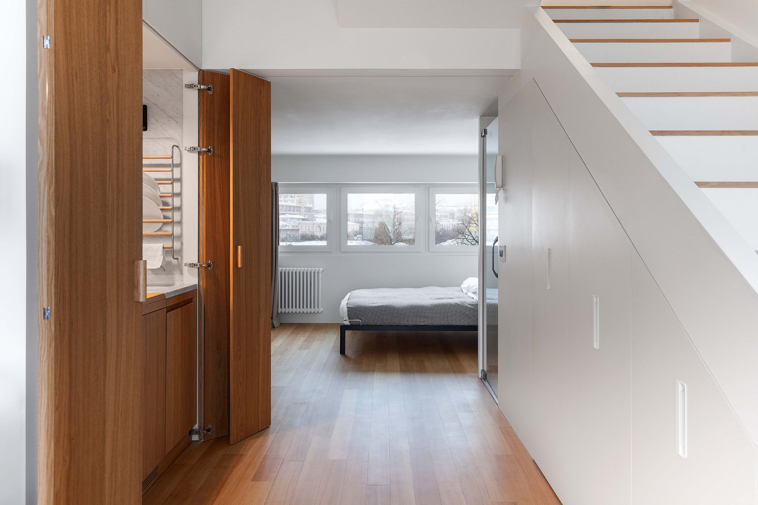 Фотография: Кухня и столовая в стиле Минимализм, Малогабаритная квартира, Квартира, Студия, Проект дня, Москва, 1 комната, до 40 метров, Алиреза Немати, Полину Полудкина, STUDIO BAZI – фото на INMYROOM