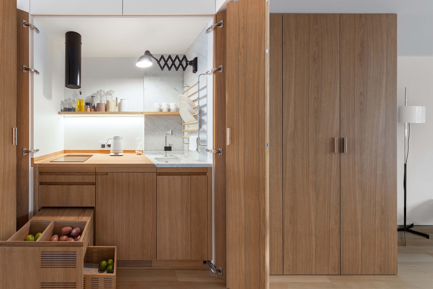 Фотография: Кухня и столовая в стиле Минимализм, Малогабаритная квартира, Квартира, Студия, Проект дня, Москва, 1 комната, до 40 метров, Алиреза Немати, Полину Полудкина, STUDIO BAZI – фото на INMYROOM