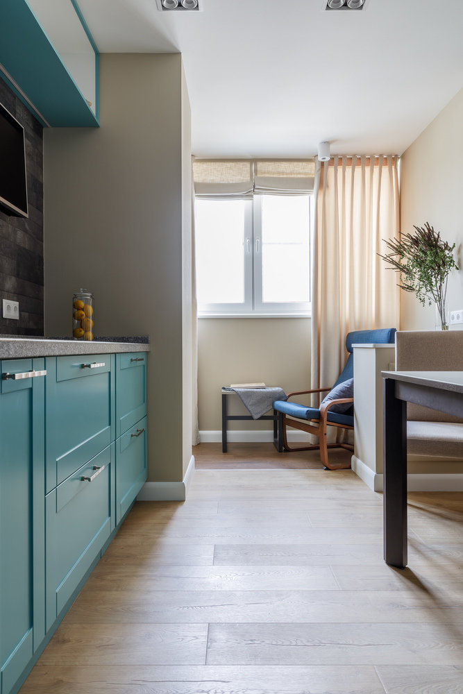 Фотография: Кухня и столовая в стиле Современный, Квартира, Студия, Проект недели, Краснодар, Монолитный дом, 40-60 метров, Ксения Демина, Анна Кузнецова – фото на INMYROOM