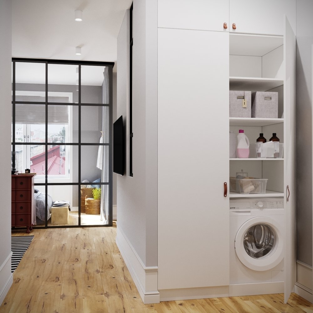 Фотография: Прихожая в стиле Скандинавский, Квартира, Проект недели, Санкт-Петербург, 1 комната, 40-60 метров, Монолитно-кирпичный, Студия 20:18 – фото на INMYROOM