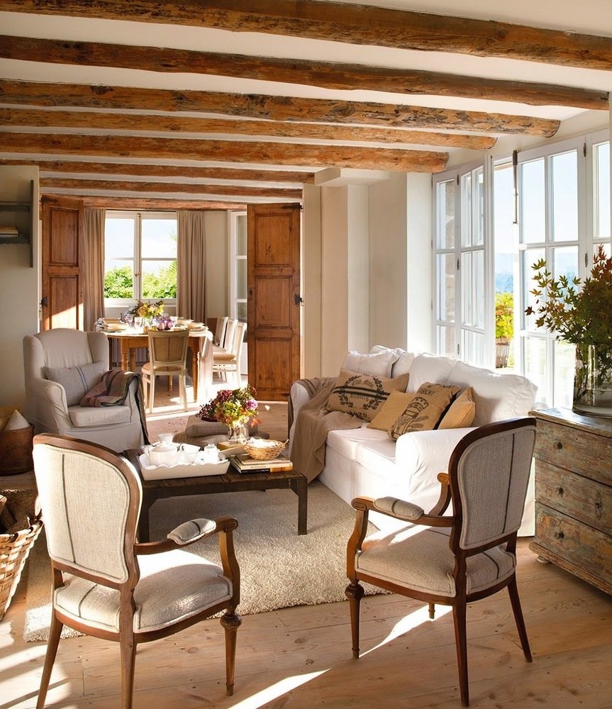 Фотография: Гостиная в стиле Эко, Декор интерьера, Дом, Испания, Декор, Мебель и свет, Белый, Дача, Бежевый, осенний декор интерьера, деревянный декор в интерьере – фото на INMYROOM