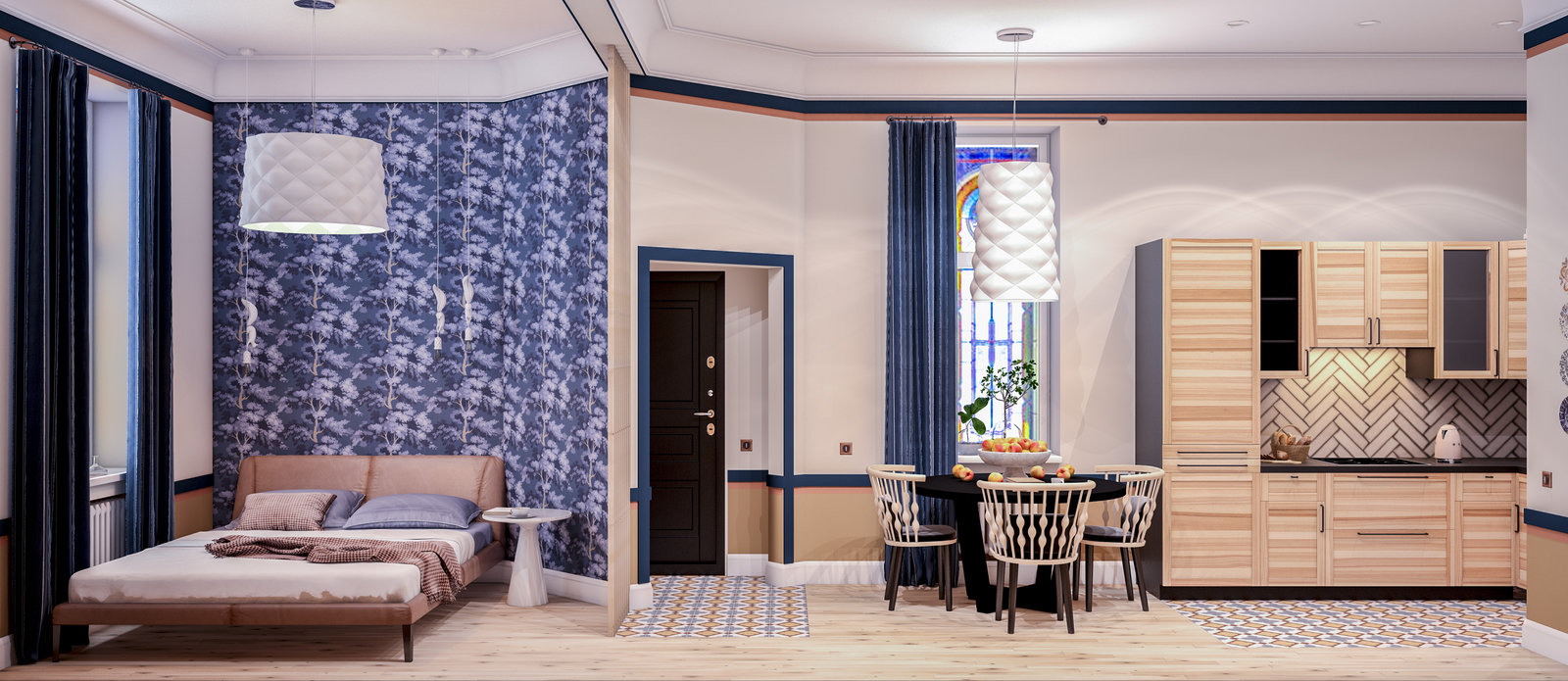 Проект маленькой студии с кухней ИКЕА4,3
