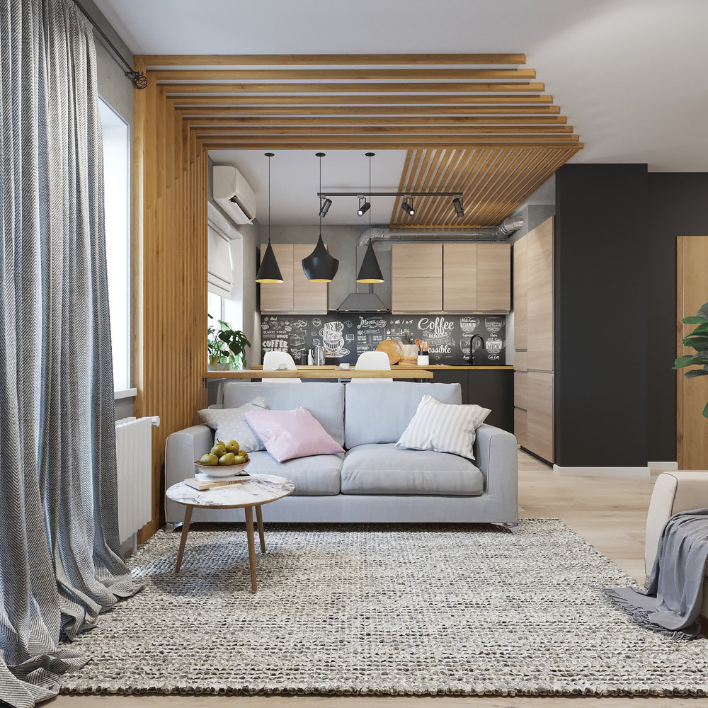 Фотография: Гостиная в стиле Лофт, Квартира, Проект недели, Екатеринбург, Монолитный дом, Юлия Калеми, 3 комнаты, 60-90 метров – фото на INMYROOM