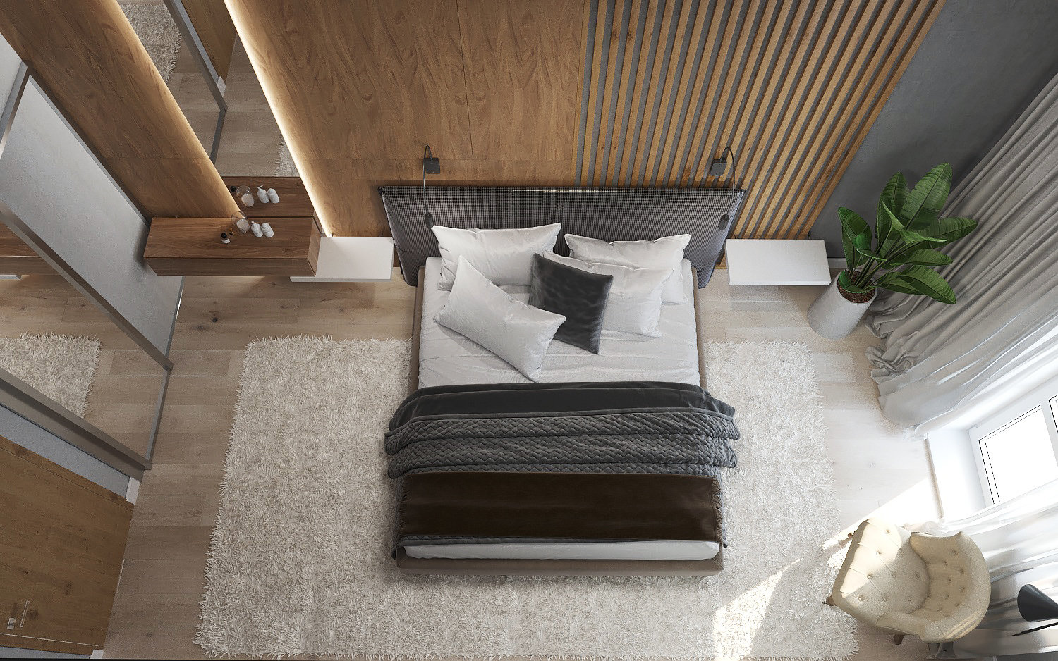 Фотография: Спальня в стиле Современный, Лофт, Квартира, Проект недели, Екатеринбург, Монолитный дом, Юлия Калеми, 3 комнаты, 60-90 метров – фото на INMYROOM