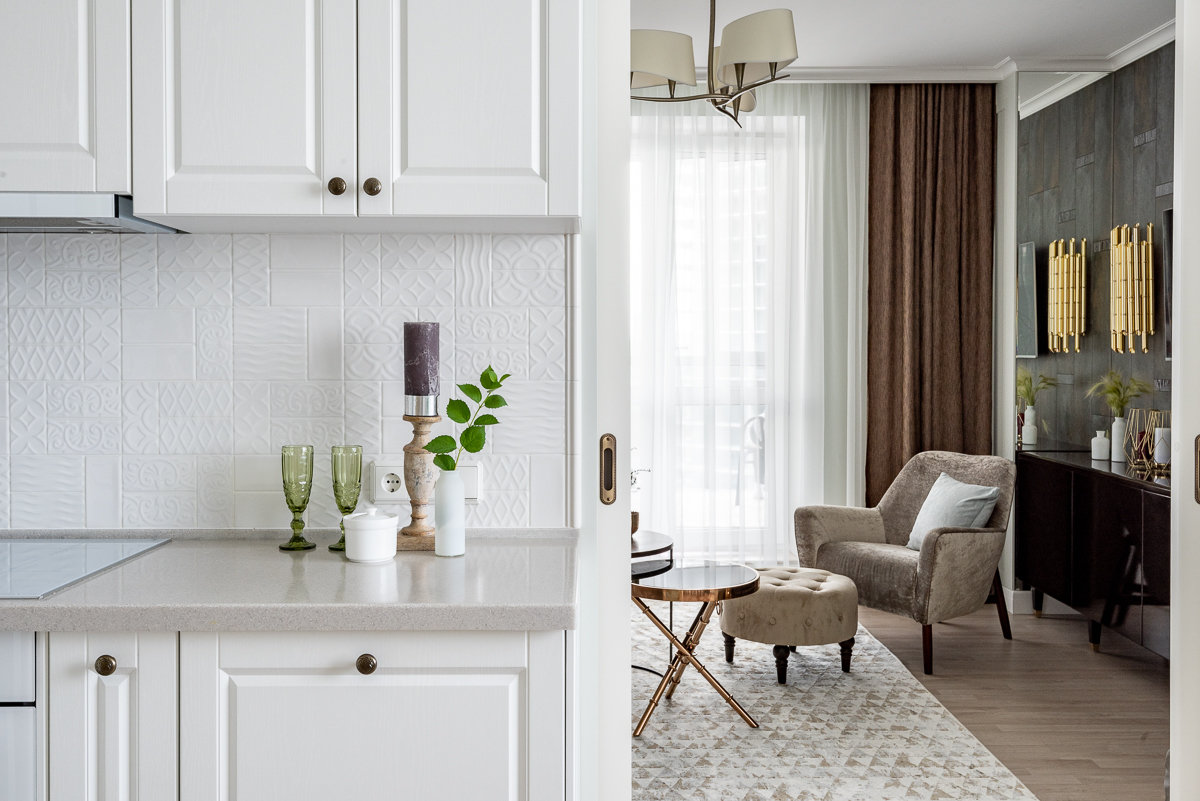 Фотография: Гостиная в стиле Современный, Классический, Квартира, Проект недели, Челябинск, Монолитный дом, 4 и больше, Более 90 метров, Надия Кисельникова – фото на INMYROOM