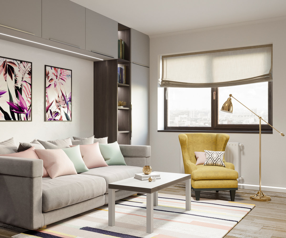 Студия с деревянными перегородками и мебелью ИКЕА4,8