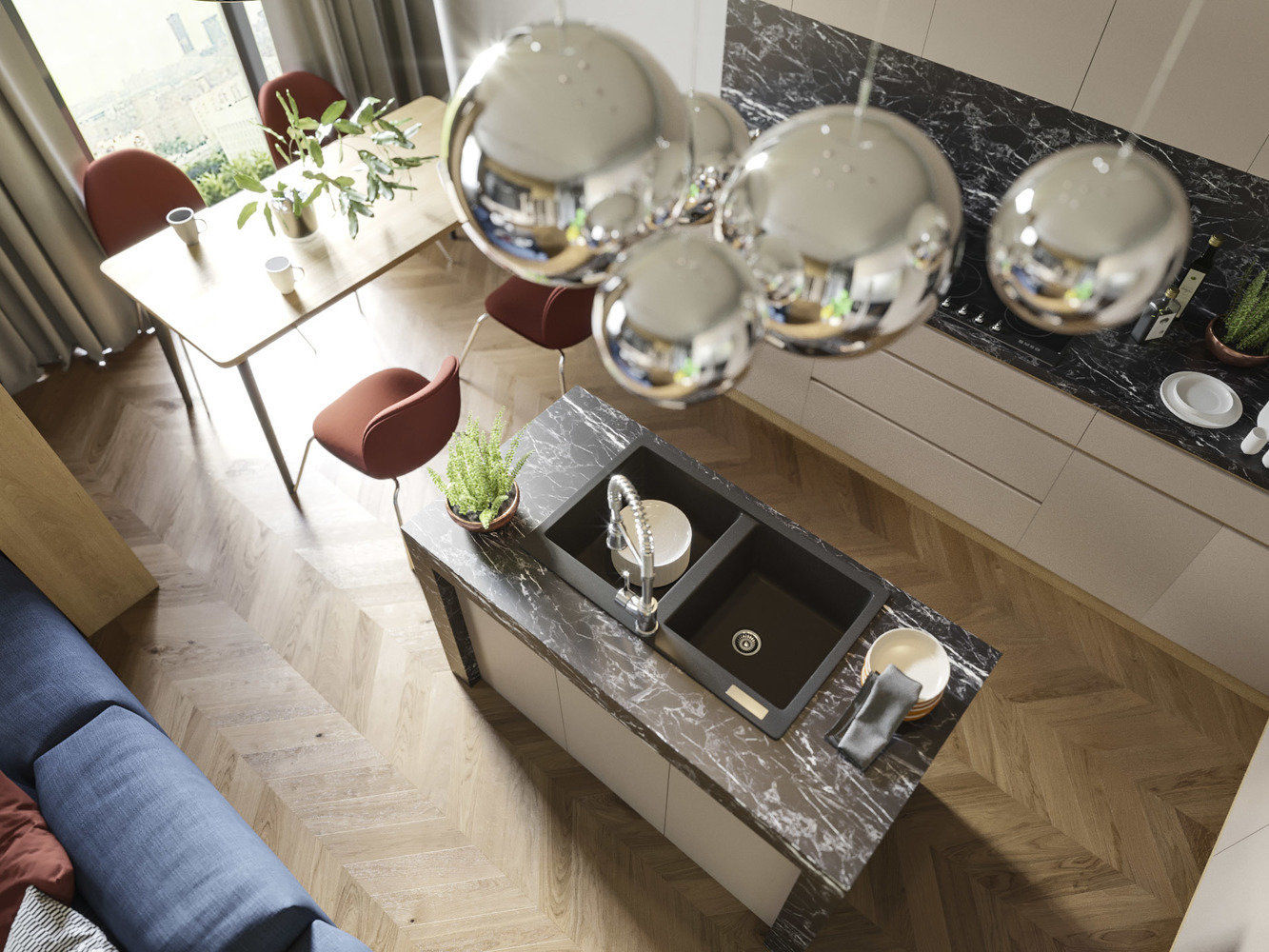Дизайн трешки с двумя спальнями и большой зоной отдыха4,3