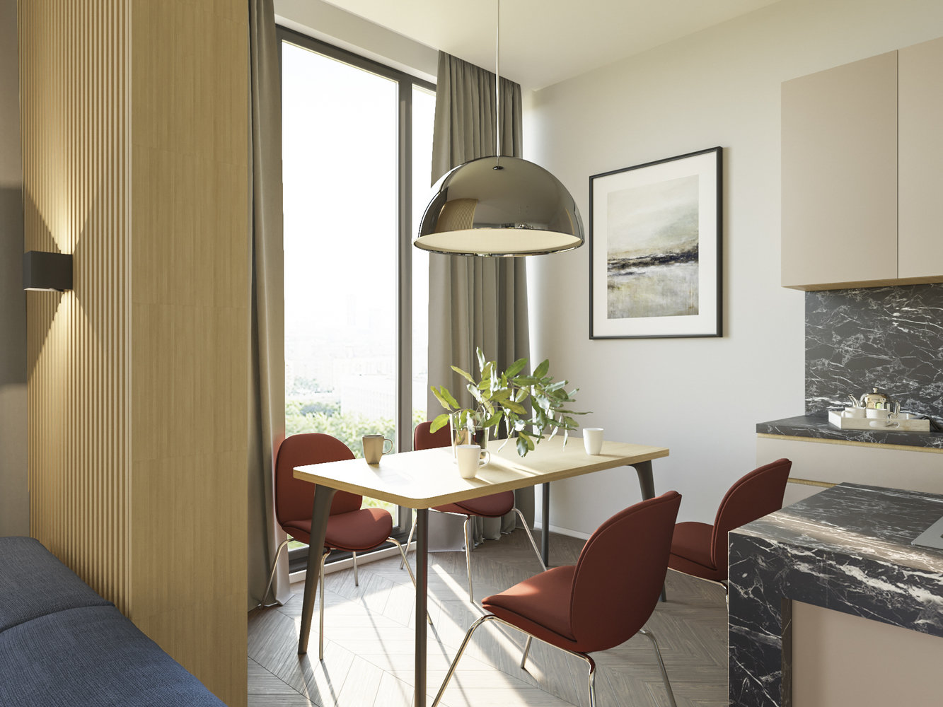 Дизайн трешки с двумя спальнями и большой зоной отдыха4,6
