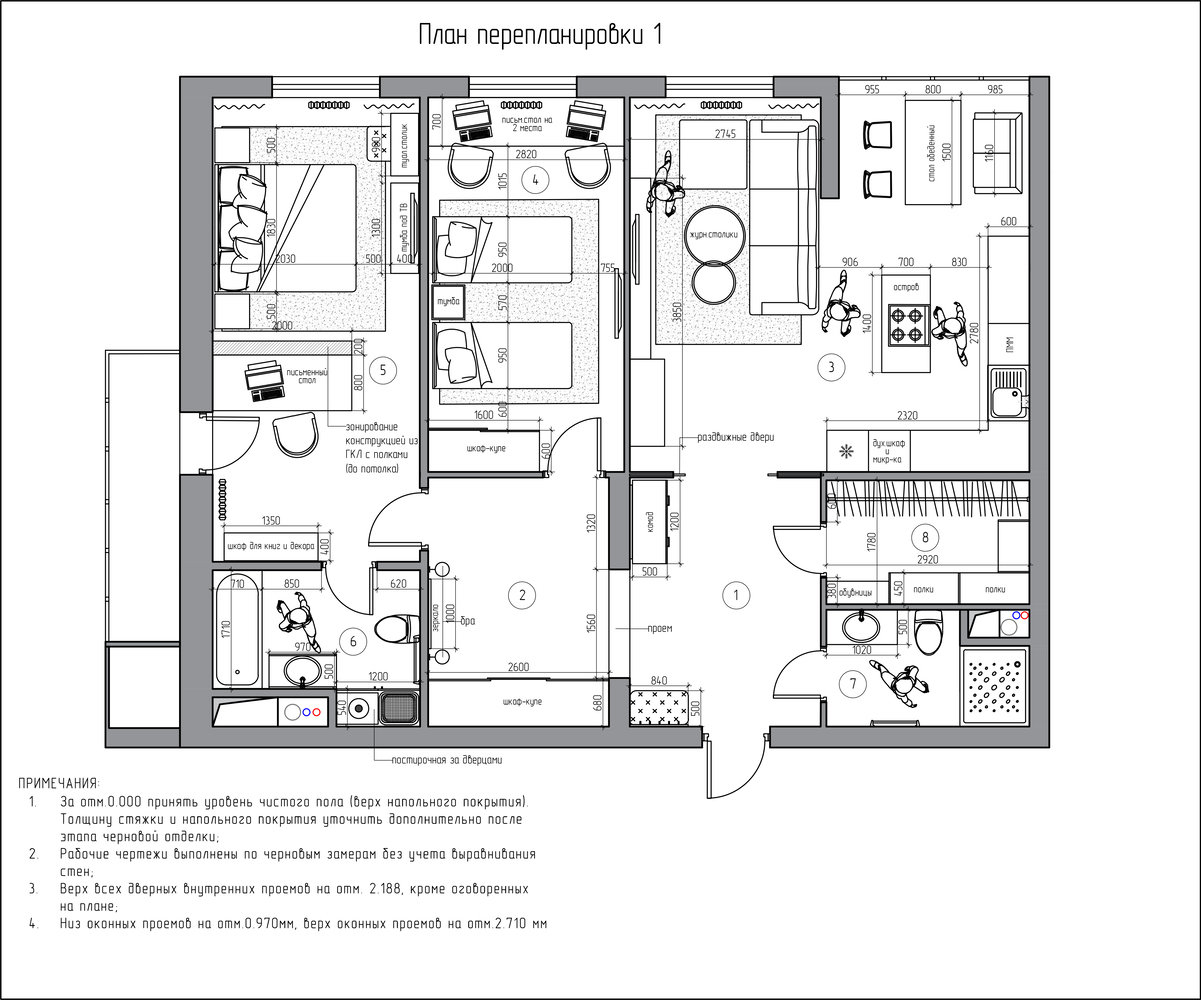 Дизайн трешки с двумя спальнями и большой зоной отдыха4,1