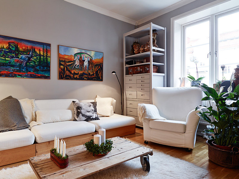 Фотография: Гостиная в стиле Скандинавский, Малогабаритная квартира, Квартира, Цвет в интерьере, Дома и квартиры, Белый, Гетеборг, 2 комнаты, 40-60 метров – фото на INMYROOM