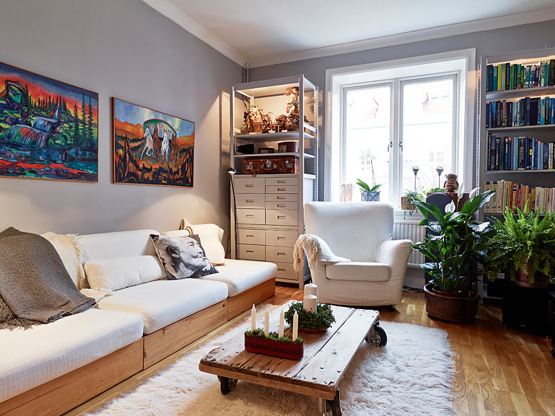 Фотография: Гостиная в стиле Скандинавский, Малогабаритная квартира, Квартира, Цвет в интерьере, Дома и квартиры, Белый, Гетеборг, 2 комнаты, 40-60 метров – фото на INMYROOM