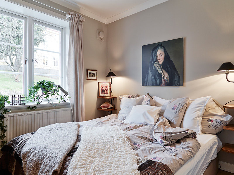 Фотография: Спальня в стиле Скандинавский, Малогабаритная квартира, Квартира, Цвет в интерьере, Дома и квартиры, Белый, Гетеборг, 2 комнаты, 40-60 метров – фото на INMYROOM