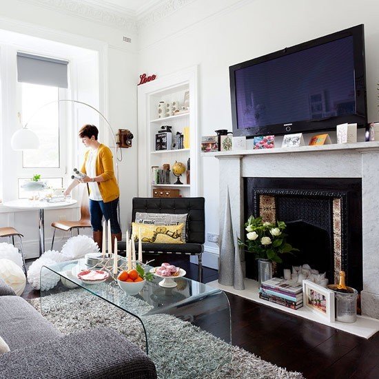Фотография: Гостиная в стиле Скандинавский, Декор интерьера, Декор дома, Праздник, Камин, Биокамин – фото на INMYROOM