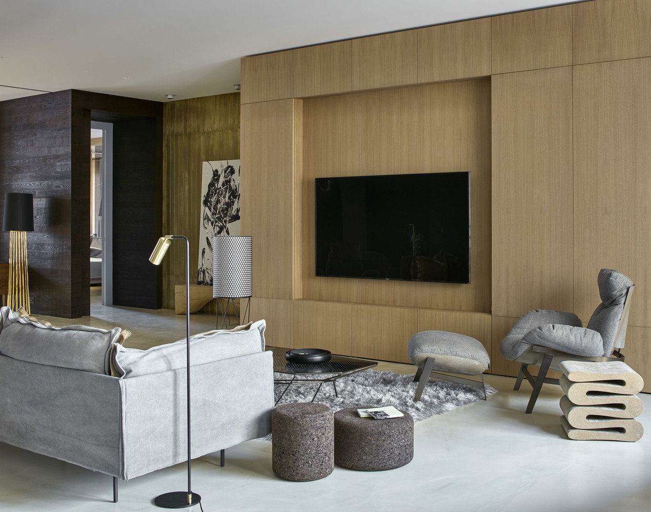 Фотография: Гостиная в стиле Современный, Квартира, Проект недели, Москва, Монолитный дом, 3 комнаты, Более 90 метров, Альбина Шорина, Георгий Козлов, Domestic Studio, #эксклюзивныепроекты – фото на INMYROOM