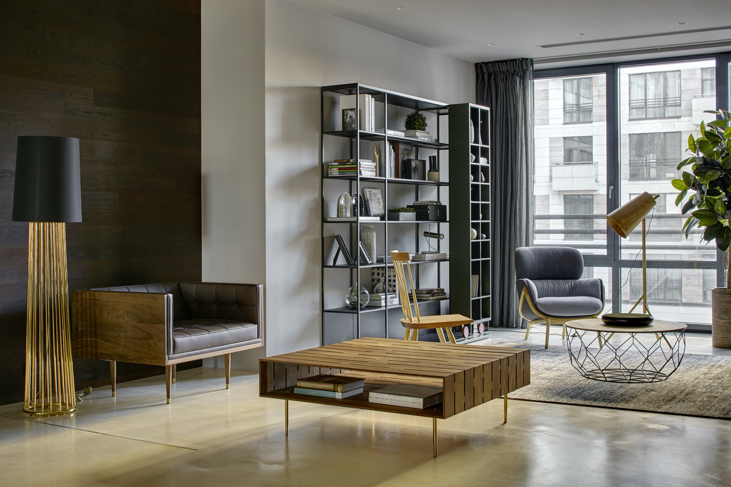 Фотография: Гостиная в стиле Современный, Квартира, Проект недели, Москва, Монолитный дом, 3 комнаты, Более 90 метров, Альбина Шорина, Георгий Козлов, Domestic Studio, #эксклюзивныепроекты – фото на INMYROOM