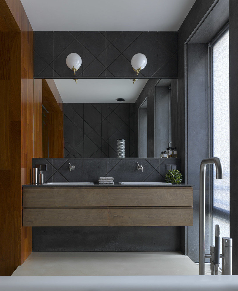 Фотография: Ванная в стиле Хай-тек, Современный, Квартира, Проект недели, Москва, Монолитный дом, 3 комнаты, Более 90 метров, Альбина Шорина, Георгий Козлов, Domestic Studio, #эксклюзивныепроекты – фото на INMYROOM