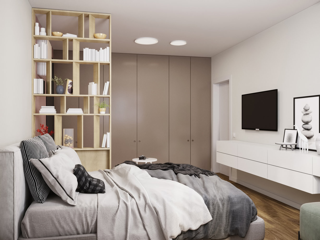 Фотография: Спальня в стиле Современный, Квартира, Проект недели, Москва, Панельный дом, 2 комнаты, 40-60 метров, Бюро «Общая Площадь», П-44Т – фото на INMYROOM