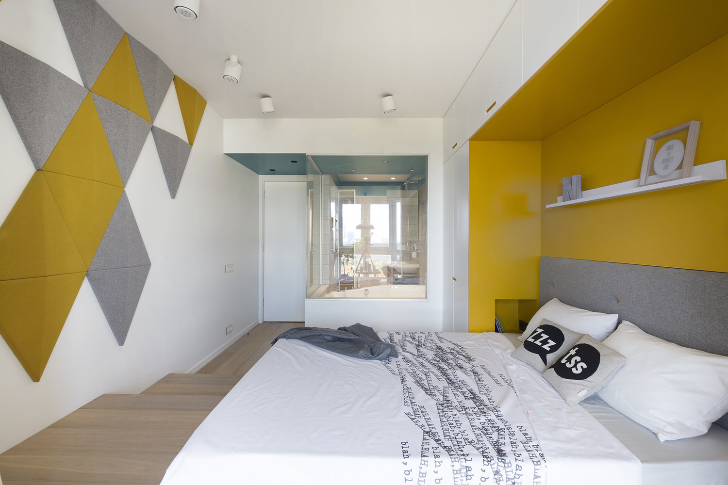 Кровать на подиуме и прозрачная ванная: трешка в Москве3,7